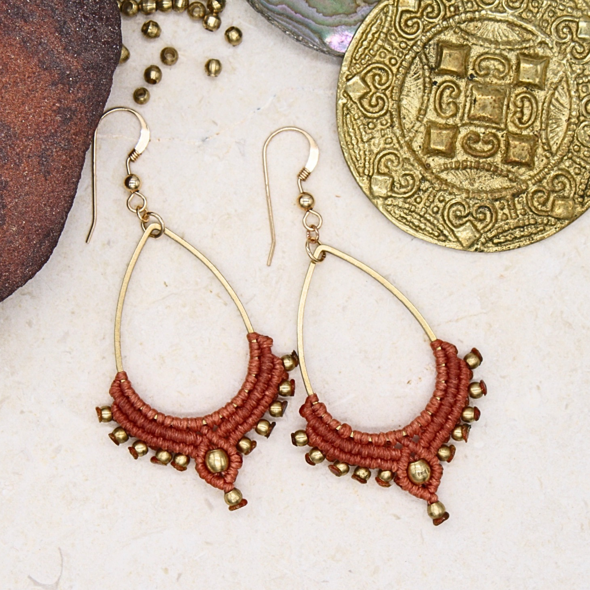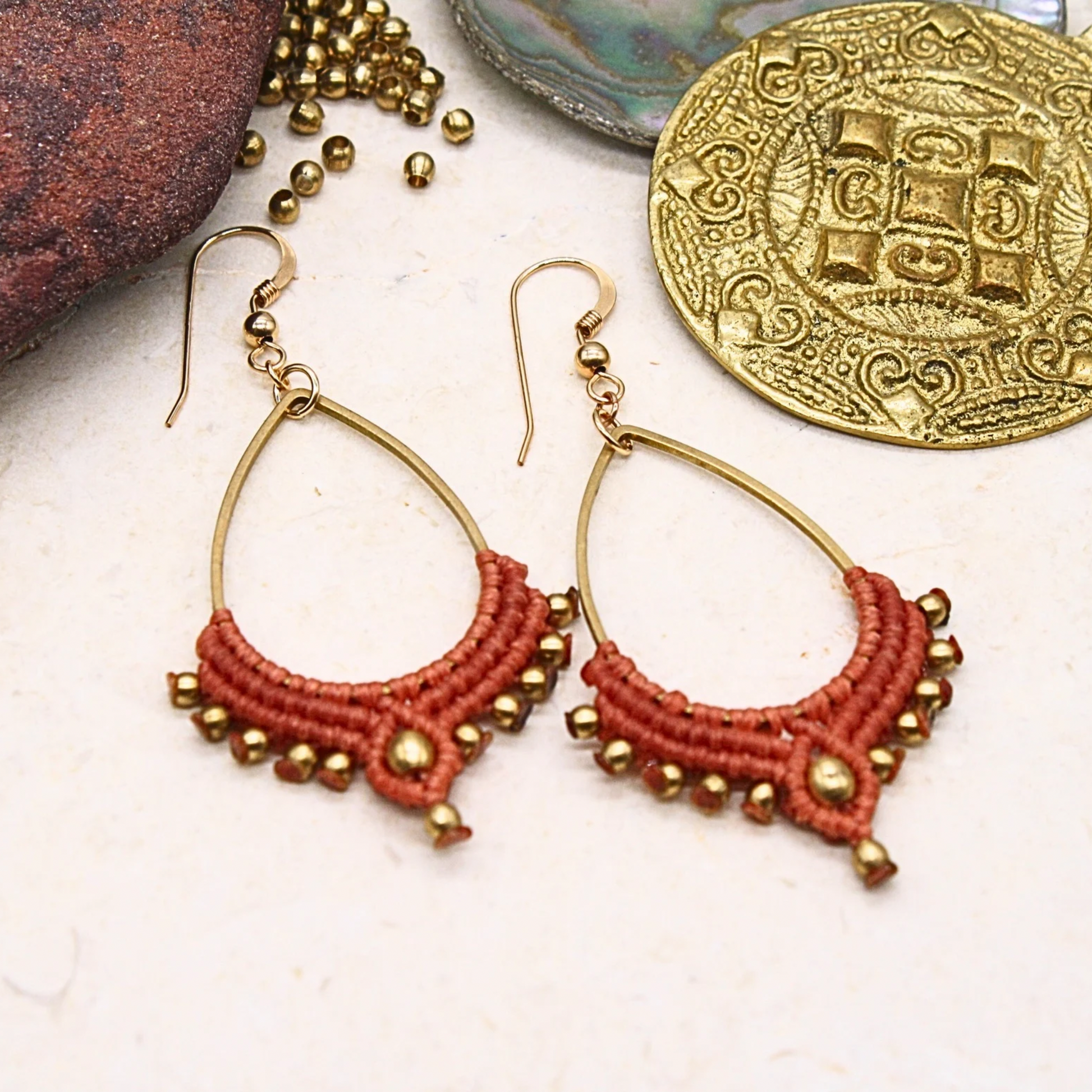עגילים יחודיים ומלאי אופי, שזורים בעבודת יד בטכניקת מיקרו מקרמה